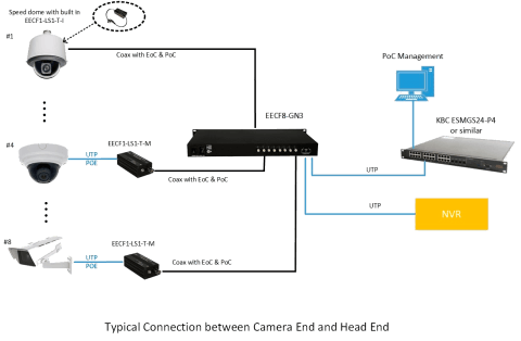Receptor diseño industrial Ethernet-coaxial de 8 puertos. 8 Puertos BNC con EoC/PoC hasta 700m, EoC/PoE+ hasta 300m. 3 Puertos Ethernet 10/100/1000Mbps. Alimentación 48-57 VDC. Montaje en Rack 1RU 100-240VAC 50/60Hz.